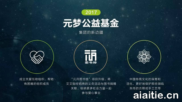 艾艾贴借此机会公布了其在2017年度的几个重大战略规划,包括品牌VI系统的全新升级、拍摄中国首部以《山海经》为故事背景的动漫大电影《大梦山海》、与招商银行联手推出品牌定制金融储蓄卡、与深圳慈善会携手设立“元梦公益基金”聚焦传统文化及妇女儿童关爱事业等等,“爱、责任、梦想”的企业理念进一步深入人心。